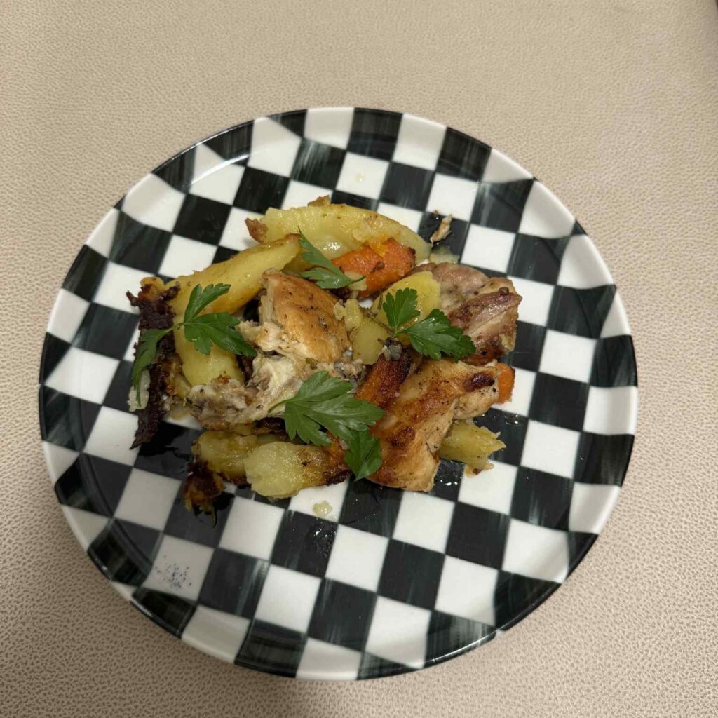 9. Ocağın altını kısın, kapak kapalı şekilde tavuk, patates ve havuçu pişirin.